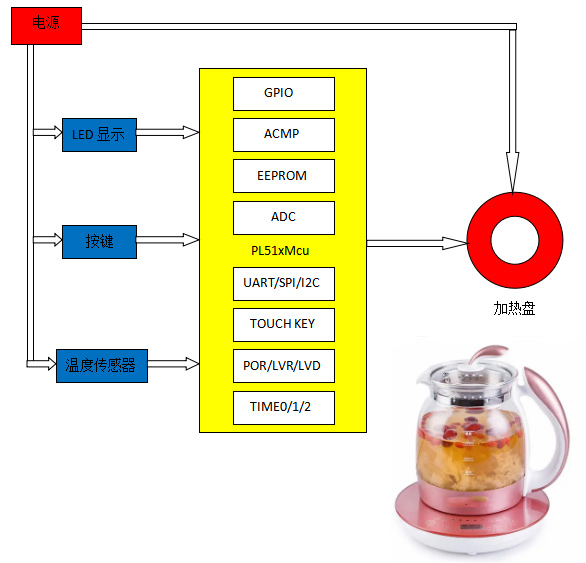 随着人们生活水平的提高,喜欢养生的人越来越多,威客电竞微电子推出高性价比养生壶控制解决方案,方案具有温度、预约时间、烹饪功能任意选择、外围电路简洁等优点,提供完整解决方案。